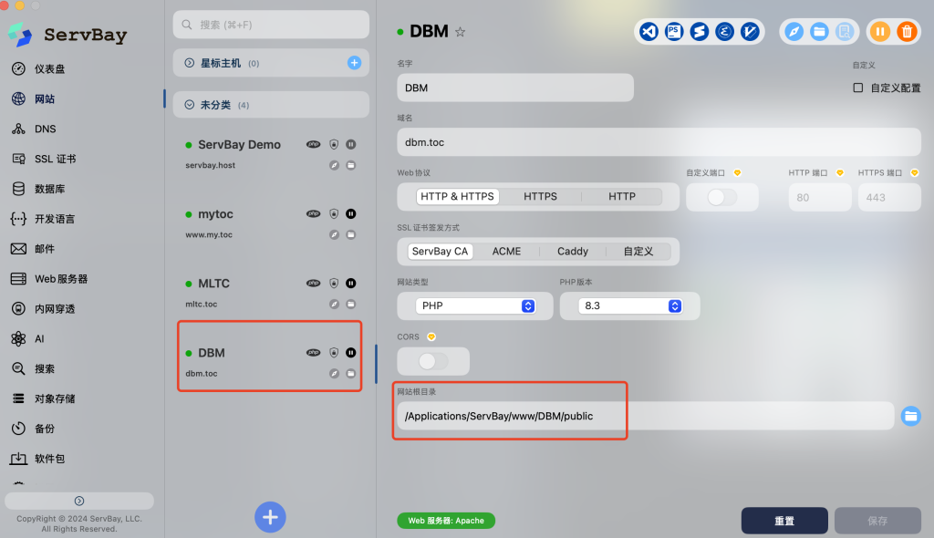 我用的是servbay做本地服务器:配置一个网站,设置一个目录,注意等一下把fastadmin下载了拷贝进去后,修改根目录为/public